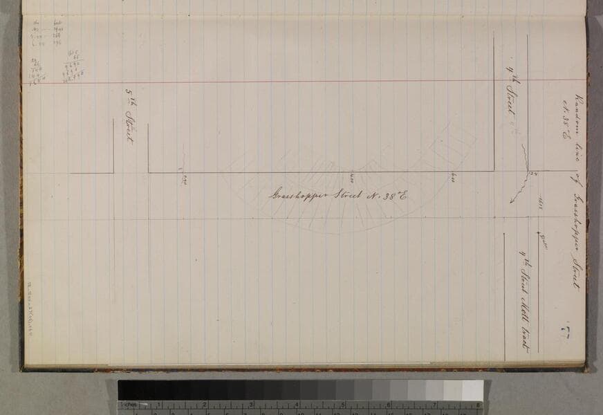 Pgs. 81-83 of bound volume, "Subdivision of Lots 500, 501, 502 and 503 of Canal and Reservoir Lands," showing hachures, markers; 1st Street, Mott Tract, Flower Street. Title supplied by cataloger.