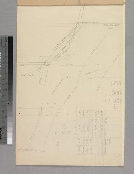 6th page within stapled document, "To Maria Dolores Dominguez de Watson, widow of James Watson deceased..." showing courses, distances; featuring Wilmington Ave., Reyes St., covered in calculations . Title supplied by cataloger.