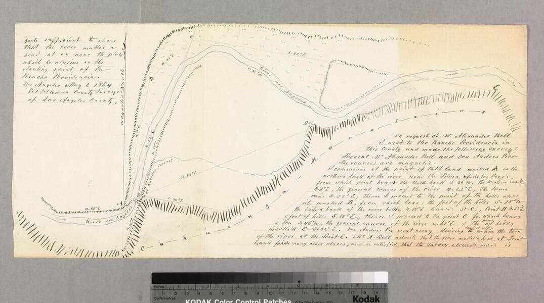 Ranchos Providencia Y Cahuenga ; plat of a survey of a portion of the river Los Angeles below the house of Syrus or Lyons