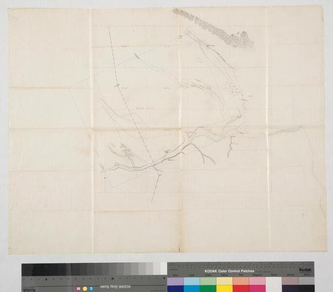 Bordered by public lands, Ranchos San Rafael, Los Feliz, San Fernando. Color highlighting, surface details, penciled additions; courses, distances, structures. Title supplied by cataloger.