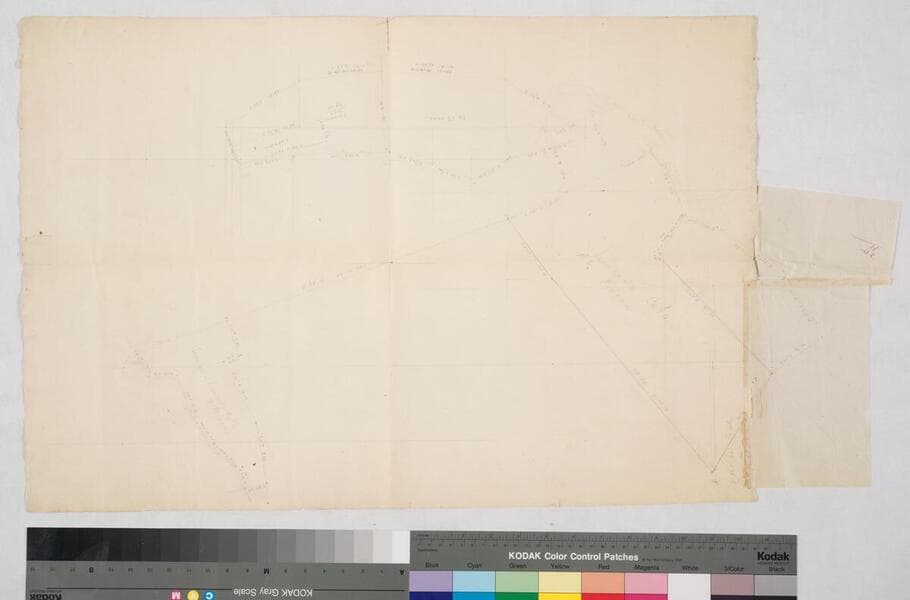 Shows courses, distances acreage of three sections. Covered in calculations. Alt. title supplied by cataloger.