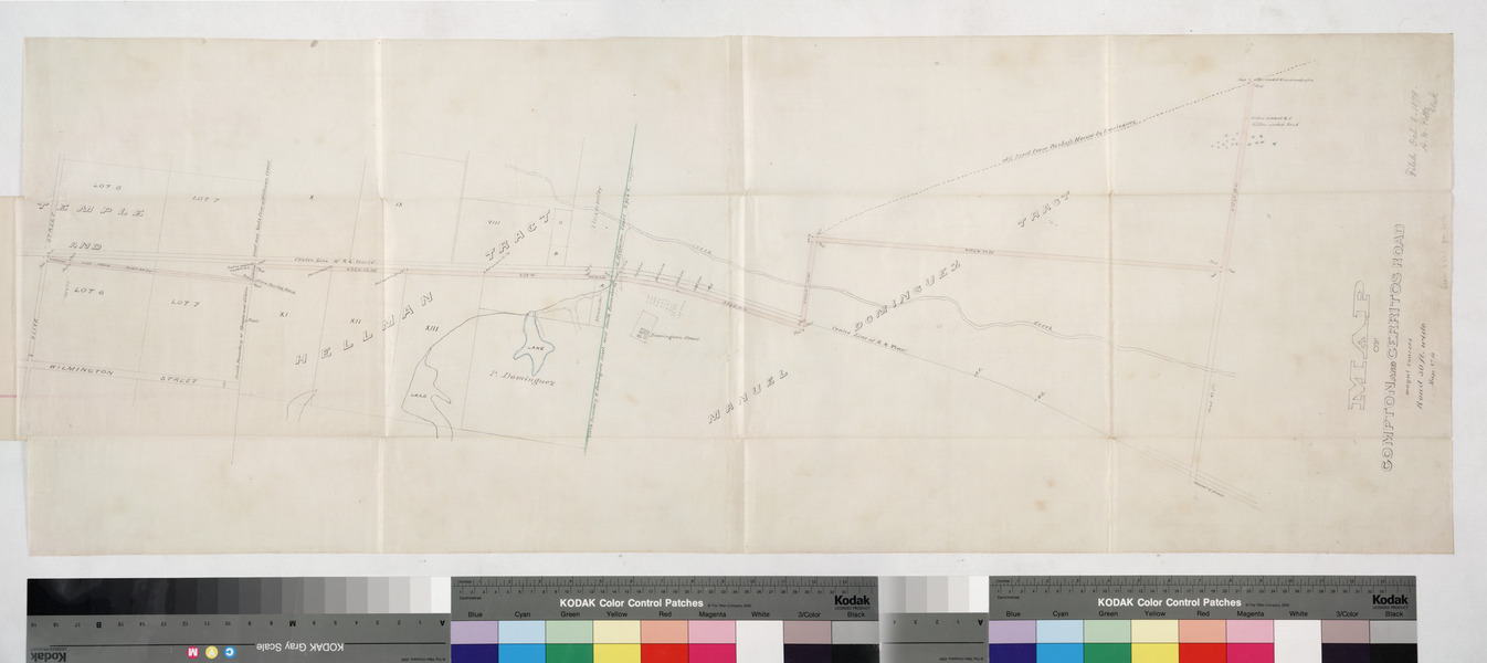 Original survey: 10/23/1878 by John E. Jackson; color highlighting, section numbers, parcel owners, surface details; Antonio Jacinto Rocha tract, Town of Wilmington, harbor. Copied by Alfred Solano. Alt. title supplied by cataloger.