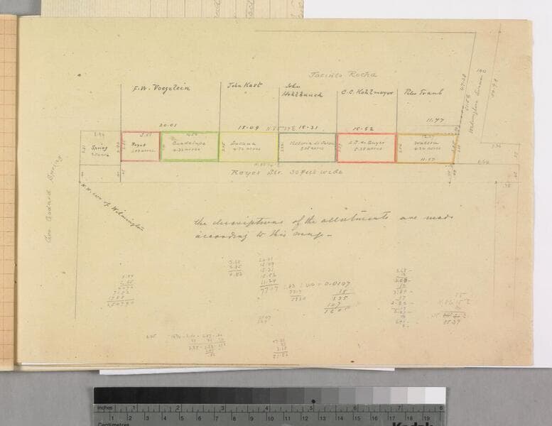 In pencil showing distances, posts, parcel numbers, calculations. Title supplied by cataloger.