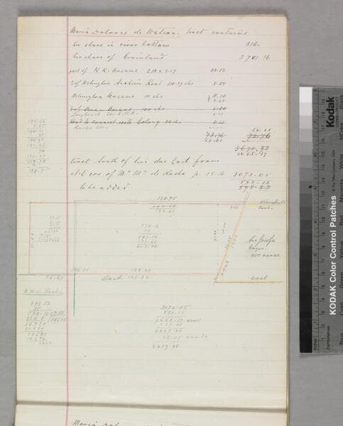 Bound within document: "1884-1885, Rancho San Pedro, Dominguez Heirs partition... to the honorable the Superior Court..." located on approximately p. 40, showing courses, distances, pencil calculations. Title supplied by cataloger.