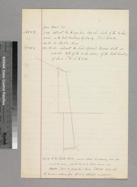 Verso of p. 4 of document: "Rancho San Pedro, Manuel Dominguez, Dominguez Heirs partition 1884/85... Dominguez Colony" showing courses, distances. Title supplied by cataloger.