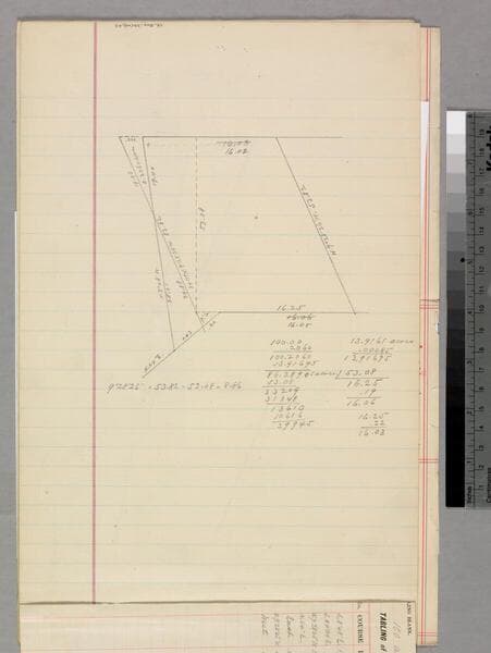 Bound within document, p. 14: "Rancho San Pedro, 1000 acres subsidy..." showing courses & distances; red pencil. Title supplied by cataloger.
