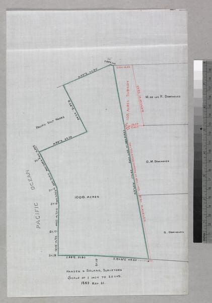 Rancho San Pedro: S66 - Map showing the Calculation of 1000 acres