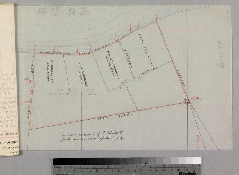 Rancho San Pedro : S73 (partition of 1884-1885, report of referees) - eastern boundary of Susana Dominguez parcels