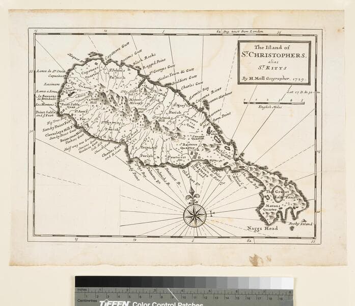 Island of St. Christophers, alias St. Kitts by H. Moll Geographer 1729
