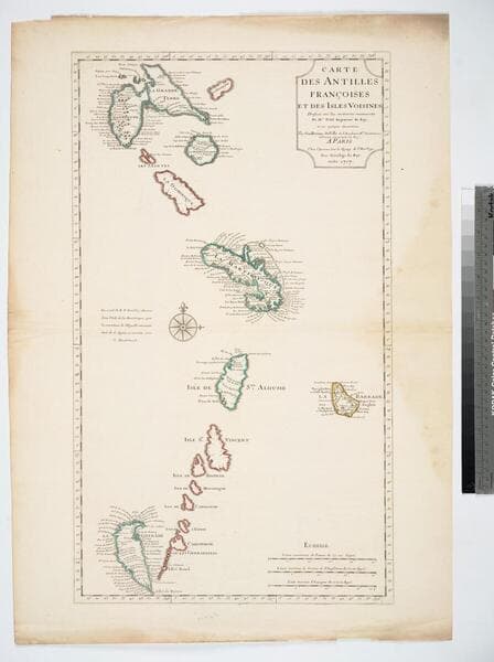 Carte des Antilles Francoises et des Isles Voisines Dresée sur les memoires manuscrits De. Mr. Petit Ingenieur du Roy, et sur quelque observations. Par Guilleaume Del'Isles de l'Academie Rle. des Sciences, et Premier Geographe du Roy