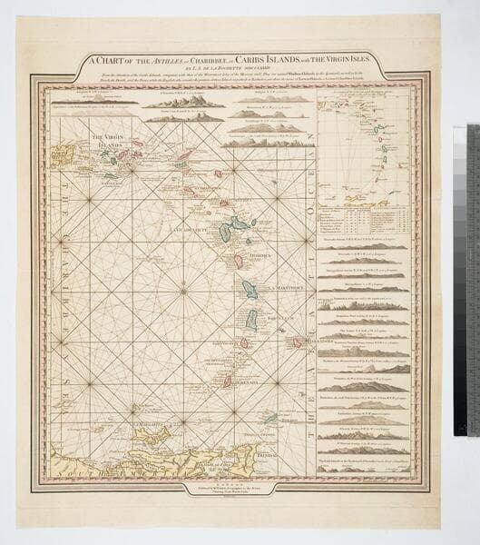 Submap: Mortant Kays Vignettes: Four island views from shipboard.. "From the Journals, Observations and Draughts of Mr. Chas. Roberts, Master in the Rl. Navy, Compared with the Pilote de l'Isle de St. Dominique of M. de Chastenet Puysugur 1787. & with the descriptionm des Bouquements of M. Bellin 1768." Prime meridian: GM. Relief: hachures. Projection: Cylindrical. Printing Process: Copper engraving. Other Features: Sub-mapsVignettes. Verso Text: MS text: 949 5.