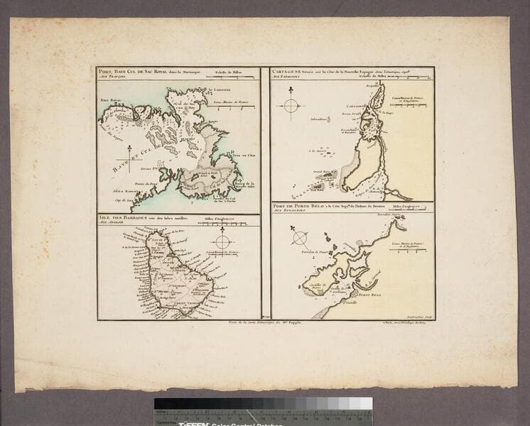 Port, Baye Cul de Sac Royal dans la Martinique. ; Isle des Barbades une des Isles Antilles. Aux Anglois ; Cartagenas Située sur la Côte de la Nouvelle Espagne dans l'Amerique Septle. ; Port de Porto Belo a la Côte Septle de l'Isthme de Panama. Aux Espanols