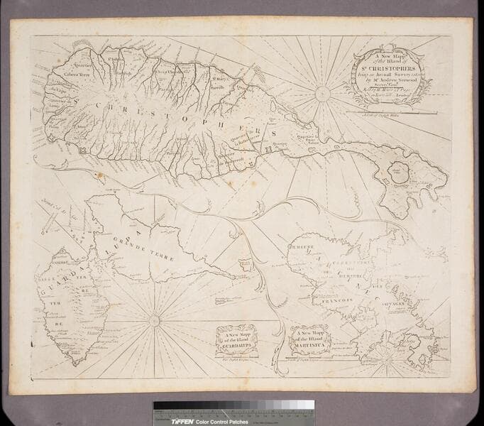New Map of the Island of St. Christophers being an Actual Survey taken by Mr. Andrew Norwood, Surveyr. Genll. By John Thornton at the Sign of England Scotland & Ireland in the Minories London. ; New Map of the Island of Guardalupa. ; New Map of the Island of Martineca