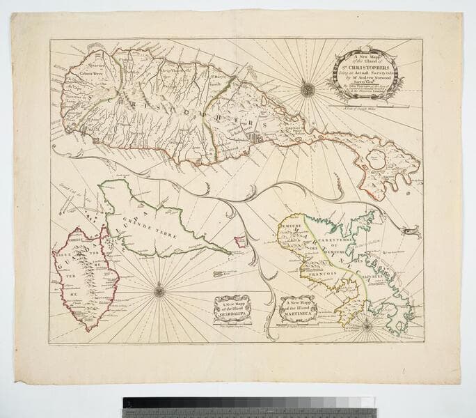 New Map of the Island of St. Christophers being an Actual Survey taken by Mr. Andrew Norwood, Surveyr. Genll. By John Thornton at the Sign of England Scotland & Ireland in the Minories London. ; New Map of the Island of Guardalupa. ; New Map of the Island of Martineca