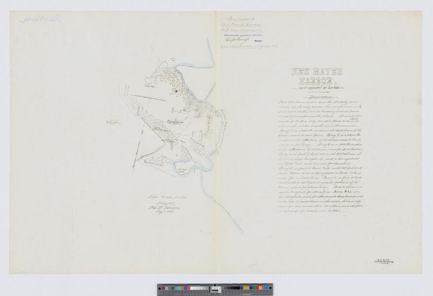 One of a series of 35 charts of small California harbors. The maps are hand tinted and include notes on the harbor conditions for ships. From the library of John Haskell Kemble. "Presented to U. S. Coast Survey with compliments of New Zealand Insurance Company ... San Francisco, 23 Jany. 1886." "E. A. Dakin, Electric Pen Printer, 320 Sansome St." Previously identified as 479297aa. Coordinates based on the location of Noyo Bay (USGS ID 229807).