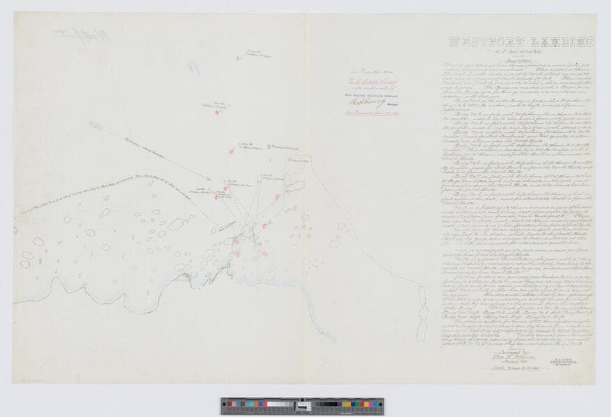 One of a series of 35 charts of small California harbors. The maps are hand tinted and include notes on the harbor conditions for ships. From the library of John Haskell Kemble. "Presented to U. S. Coast Survey with compliments of New Zealand Insurance Company ... San Francisco, Jany. 23, 1886." "E. A. Dakin, Electric Pen Printer, 320 Sansome St." Previously identified as 479297n. Coordinates based on the location of Collins Landing (USGS ID 1658302).