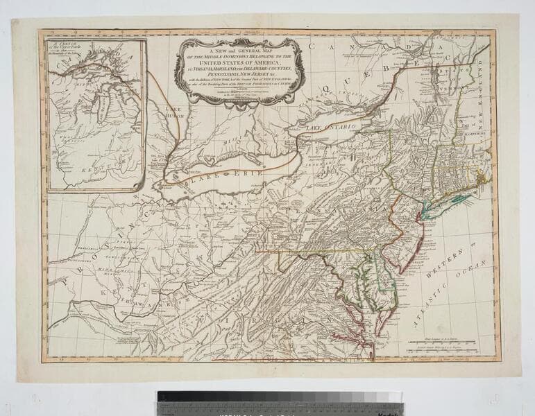 A new and general map of the middle dominions belonging to the United States of America, viz. Virginia, Maryland, the Delaware-Counties, Pennsylvania, New Jersey &c. with the addition of New-York, & of the greatest part of New England &c. as also of the bordering parts of the British possessions in Canada