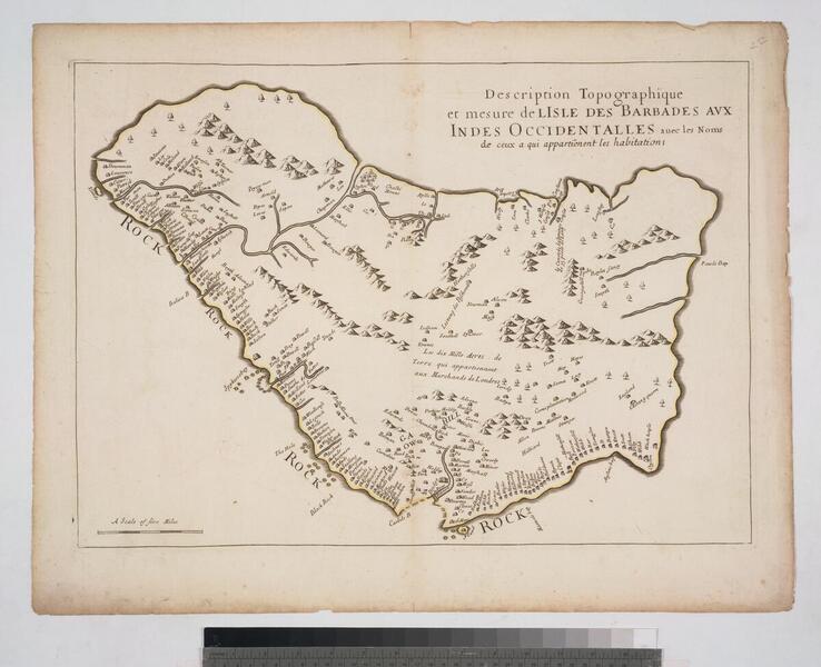 Description Topographique et mesure de l'isle des Barbades aux Indes Occidentalles avec les Noms de ceux a qui appartienent les habitations