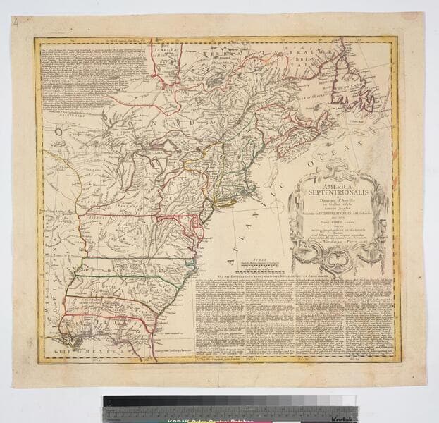 America Septentrionalis : a Domino d'Anville in Galliis edita nunc in Anglia ; coloniis in interiorem Virginiam deductis nec non fluvii Ohio cursu aucta notisque geographicis et historicis illustrata et ad bellum praesentis temporis accomodata sumptibus / Homannianorum Heredum