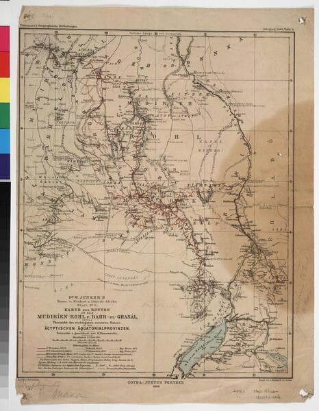 Dr. W. Junker's Reisen in Nordost- U. Cental-Afrika, Blatt No. 2. Karte der Routen in den Mudiríen. Rohl u. Bahr-el-Ghasál, sowie Übersicht der wichtigsten neueren Reisen in den Ägyptischen Äquatorialprovinzen / entworfen u. gezeichnet von B. Hassenstein