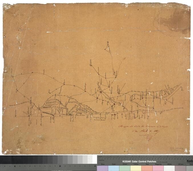 Kirkpatrick Catalogue entry: "2459 Atacama. Provincia se Atacama. [Santiago?, 18--]. 1 sheet [see p.]."Unknown maker of a mining district Burton may have had an interest in.Faint imprint in right margin reading "Breton Freres et cie."Atacama was a province from 1843 to 1974. The Copiapo-Caldera railway, the first in Chile, was constructed in 1850. The map shows "ferro carril" (railway track) between Juan Godoi and Copiapo, so this map was made after 1850. Probably obtained while Burton was in South America between 1865 and 1868. Ms notes: Burton (map cabinet) Atacama 2459. Relief: no. Projection: Plane. Printing Process: Lithography.