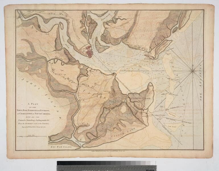 Plan of the Town, Bar, Harbour and Environs, of Charlestown in South Carolina, with all the Channels, Soundings, Sailing-marks &c. From the Surveys made in the Colony Engraved by William Faden, Charing Cross, 1780