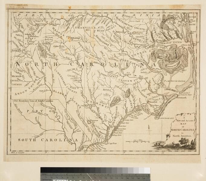 Kashnor dates as c.1770. Probably later because of reference to Revolutionary War. Some notes regarding boundary dispute between New York and New Jersey. Small vined cartouche with sailing ship. MS note: 101 (on backing). Prime meridian: London. Relief: pictorial. Graphic Scale: Miles, statute. Projection: Cylindrical. Watermark: Crowned seal. Printing Process: Copper engraving. Other Features: Cartouche. Verso Text: MS note: 410 (map) 101 (on backing).