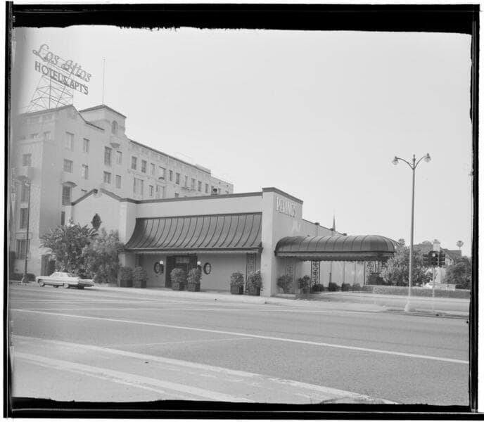 Exterior and interior views of restaurant. Mural inside the restaurant by Ernest Neuman.
