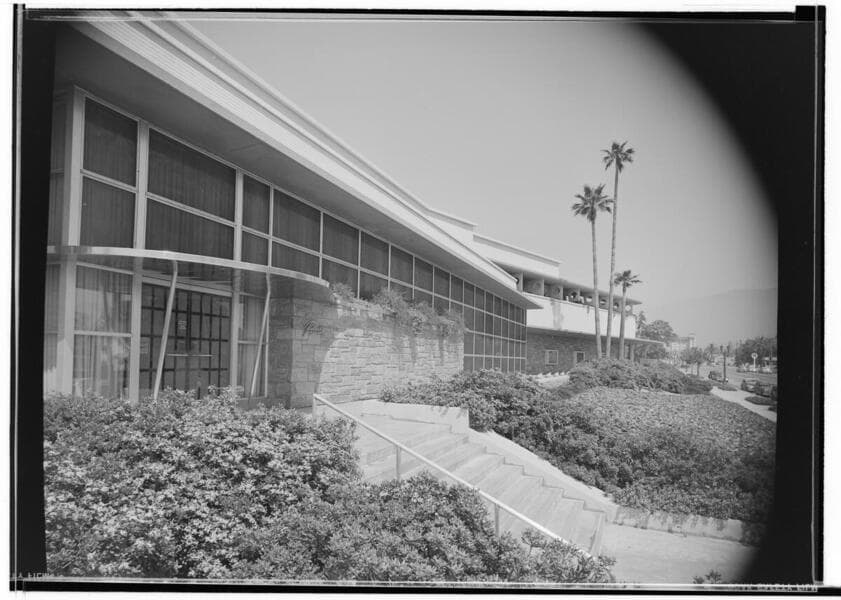 Exterior and interior views of restaurant. Mural inside the restaurant by Ernest Neuman.