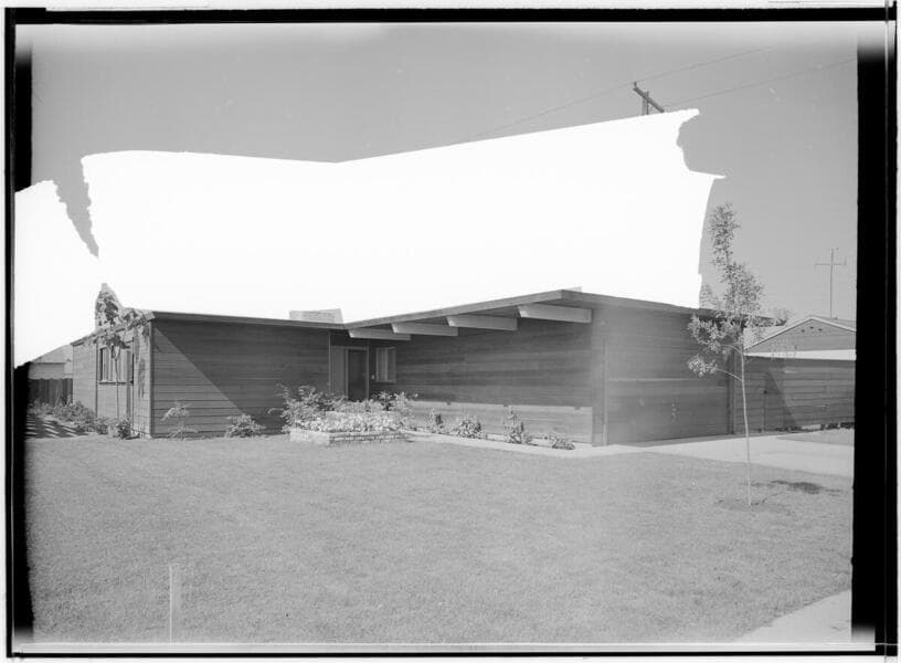 Interiors and exteriors of house. Interiors feature Barker Brother's Pacific Modern furniture.
