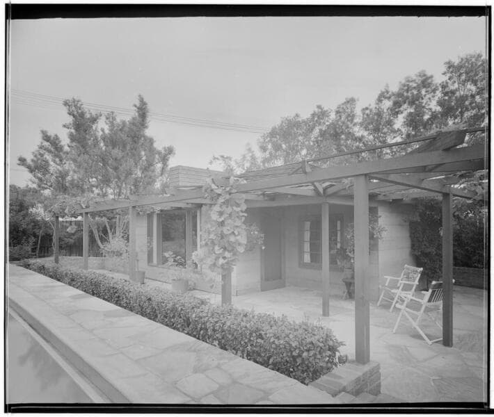 Interior and exterior views of a small house and a detached studio. Includes Mr. Larrinaga painting in his studio, as well as the surrounding desert landscape.