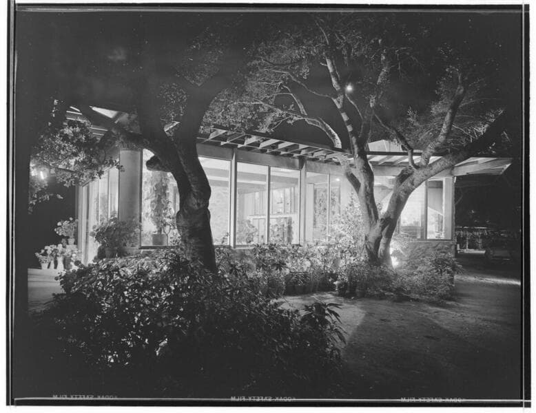 Interior, exterior and garden scenes of a house especially of the patio, storage facilities and household conveniences. Includes images of a Seeburg Select–O–Matic juke box and of expansive views from the house.