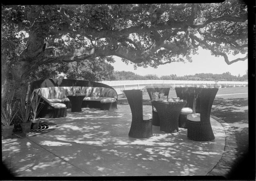 House interiors and exteriors; views of residence with outdoor blinds raised and lowered; view of garden room; some images include an unidentified woman, maybe Ms. Gordon.