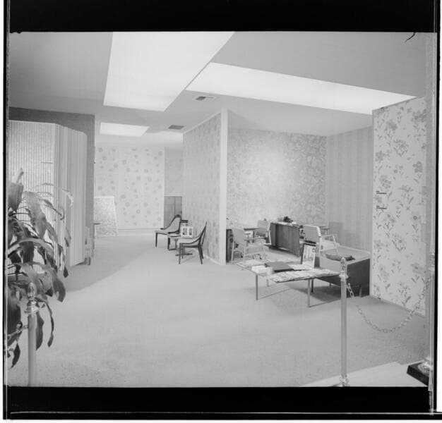 Views of Harrell's interior design showroom? Also includes a portrait (of Harrell?).