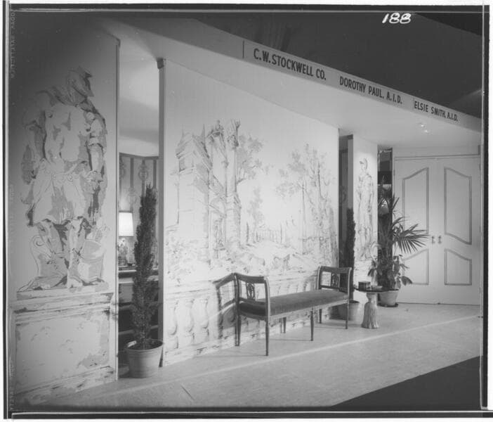 View of wallpaper setup at American Institute of Decorators show held at the Hollywood Palladium.