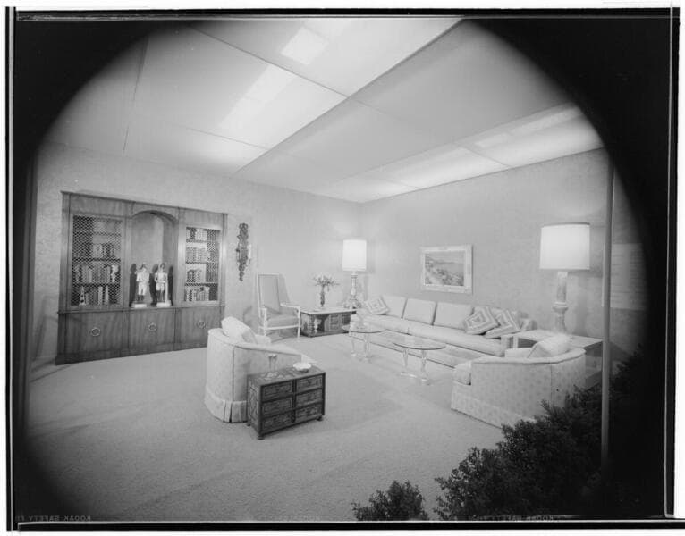 Views of room set ups at American Society of Interior Decorators Show held at the Pan-Pacific Auditorium. One image may depict Ritts Co. furniture.