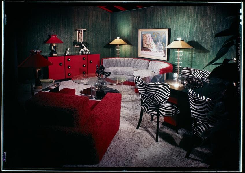 Views of a war bonds window display, furnishings, furniture setups (including the Leather Room and the Heritage Furniture Gallery), store displays, and an interior design consultation, at Beverly Hills store?