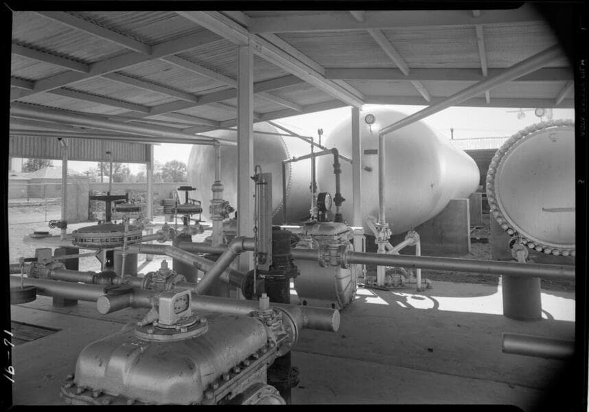 Miscellaneous images of unidentified locations and people, including a 1940s–era drive–in restaurant exterior; a water fire; landscape views; animals; an airplane; and an archery tournament.
