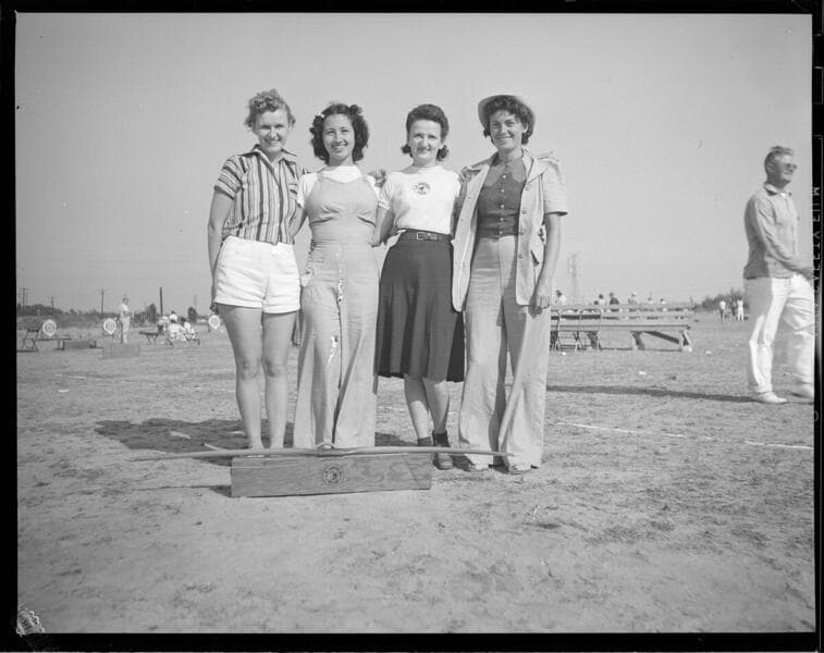 Gladys Hammer with archery equipment and one image of an unidentified girl holding a bow and arrow.