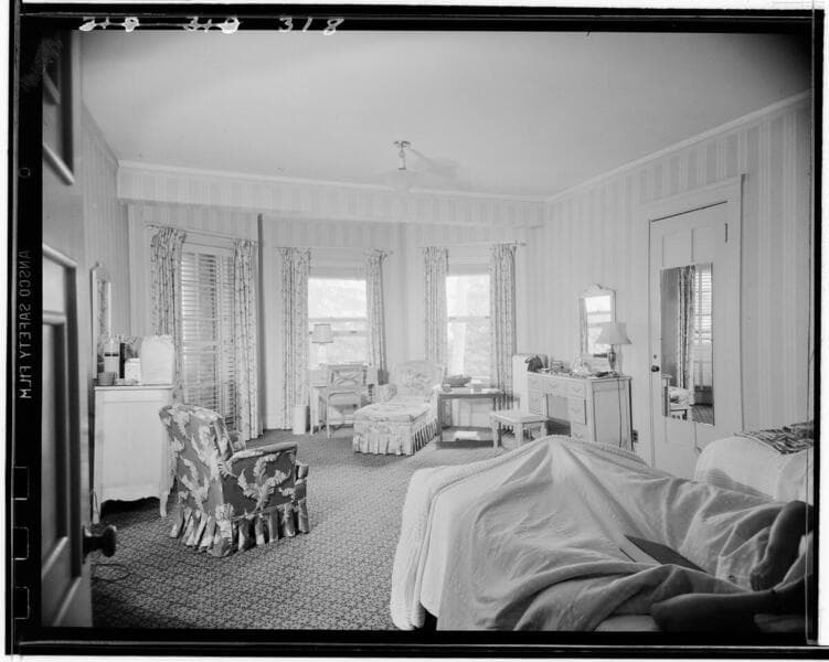 Views of guest rooms and guest room furnishings (after renovation?), and two views of Mr. Courtright's office.