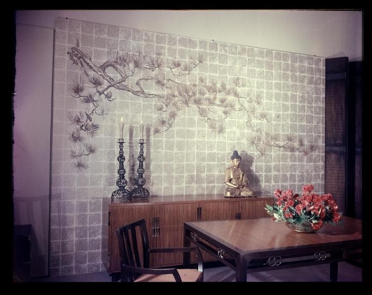 Wallpaper setups at Robertson Boulevard showroom with Knapp and Tubbs furniture.