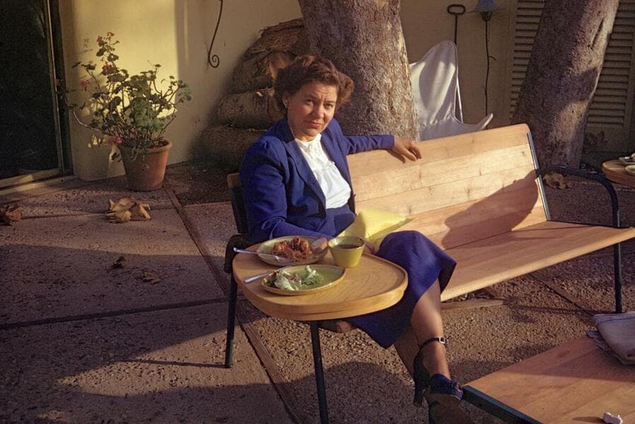 Views of Elizabeth Gordon outside at Taliesin West. Taken during Parker's shoot of the residence for House Beautiful.