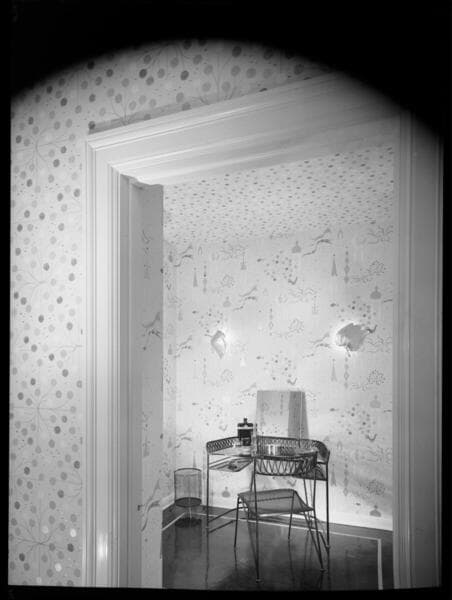 Views of wallpaper setups. Also includes portraits of Remy Chatain in his office, decorated with Stockwell's Martinique wallpaper.