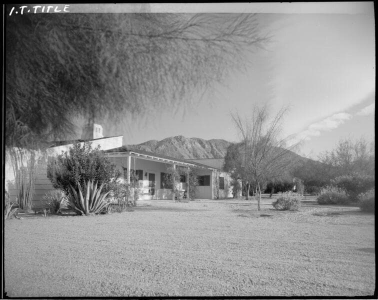 Interior and exterior images of a house. Primarily of patios and other landscaping but including images of a dressing room and the kitchen.