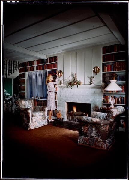 Exterior and interior views of house, with emphasis on outdoor spaces. Includes one image of homeowners (?) at barbecue on patio.