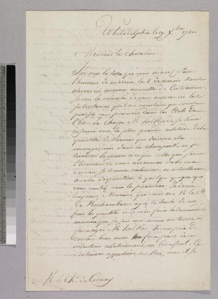 Letter : Philadelphia, to Charles-Henri-Louis d'Arsac Ternay, 1780 October 19