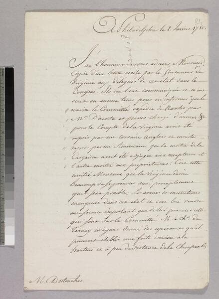 Letter : Philadelphia, to Charles-René-Dominique Sochet Destouches, 1780 January 2