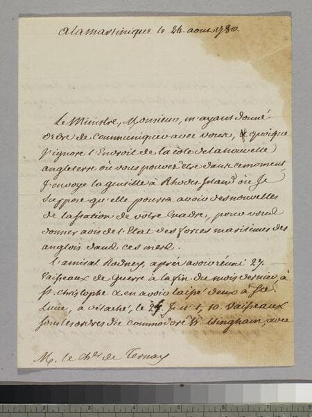Letter : Martinique, to Charles-Henri-Louis d'Arsac Ternay, 1780 August 24