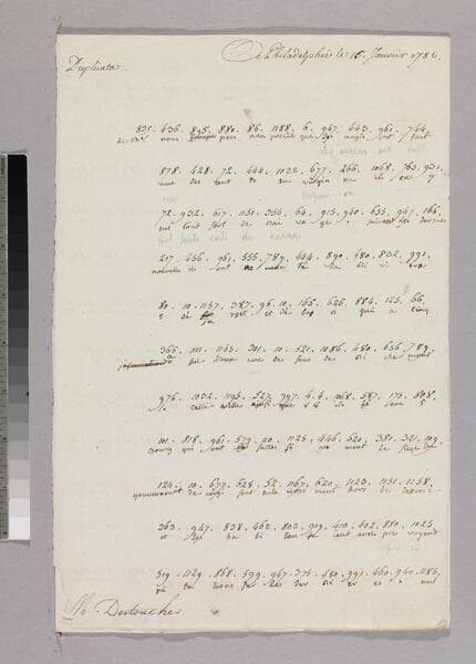 Letter : Philadelphia, to Charles-René-Dominique Sochet Destouches, 1781 January 16