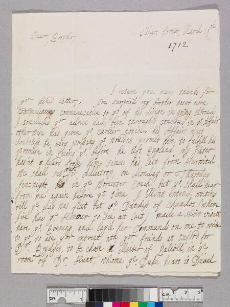 Villars Street, London, England. Red wax seal; misdated "1712" in another hand, (2 p.)